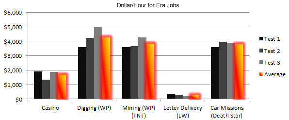 I'm going to pull together some statistical data about each job to illustrate this point. (I've done it before, but it was incomplete, and is now outdated due to changes in some jobs and my mining level.)