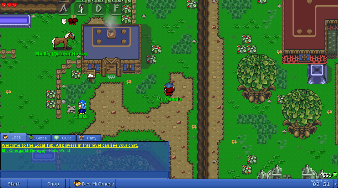 Controls : Relatively same to default Graal. Eventually will have a custom key mapping system to allow players to rearrange how to they play to be most comfortable. Currently uses arrow keys/mouse to move and ASDF to interact with the world. There is a beta stage core system built in, on the start menu go to options to toggle it on/off.