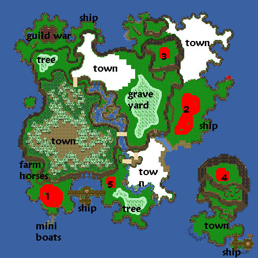 For my suggestions on what should be added, I'd like to see more forest. Maybe add a snow peak/town for #4. A small shop or couple houses for #5 (thinking witch's house or bandits?). #1 should be a town because you have a port there. #2 should be a wooded path, maybe with a forest town. Extend #3 and make a larger mountain range.