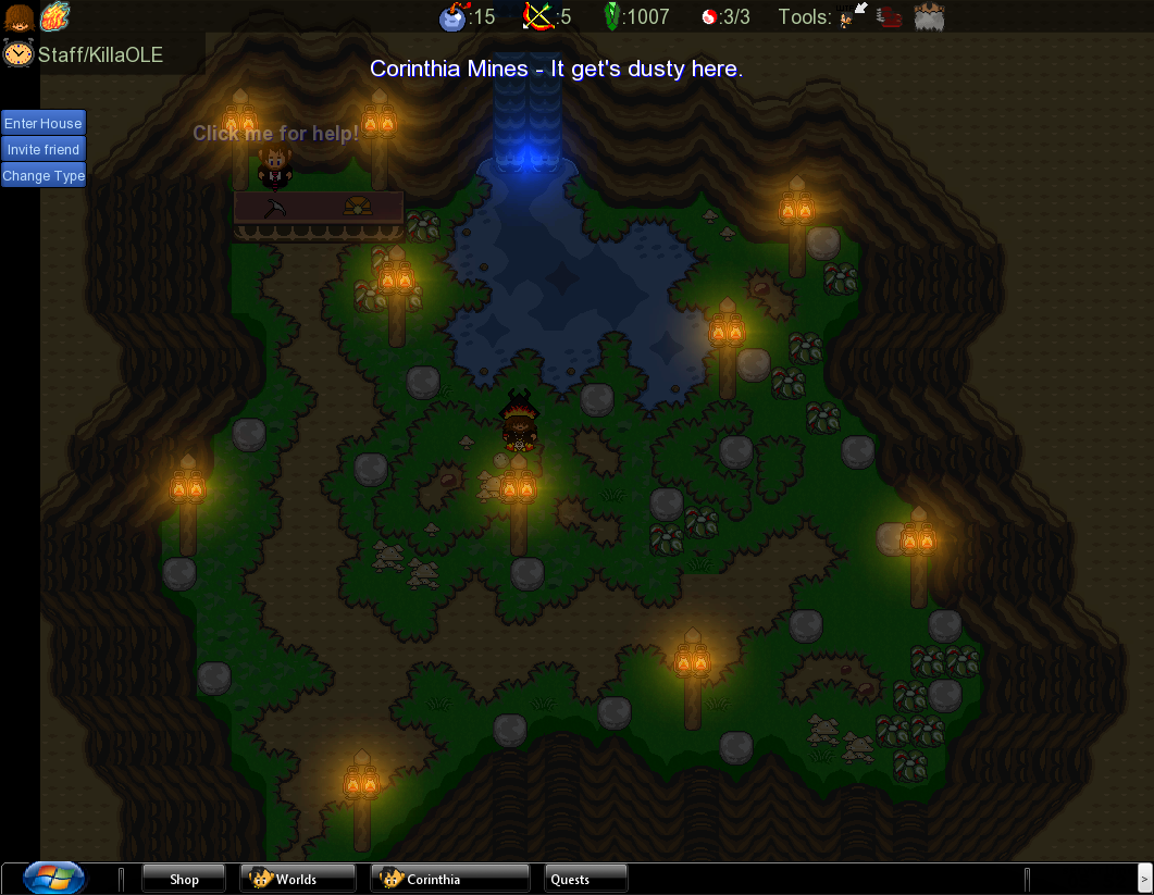 • The mining system has been redone too. The original mining system used to show this ugly text that took up a large area of your screen. Now, the NPC's chat text shows how close you are to finishing mining the rock. After you collect your rock, you can sell them to an NPC at the back of the mines for Gralats. Wearing a miners hat will half the time it takes to mine a rock too!