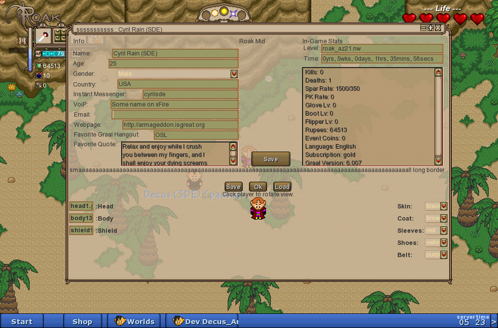 ROAK is a upcoming server that represents classic style in a new way. We have many new features that will bring classic graal back to its roots. Our goal is to improve the classic style of sparring/pking with advanced movement, strategic monsters, boss fights and rewards.