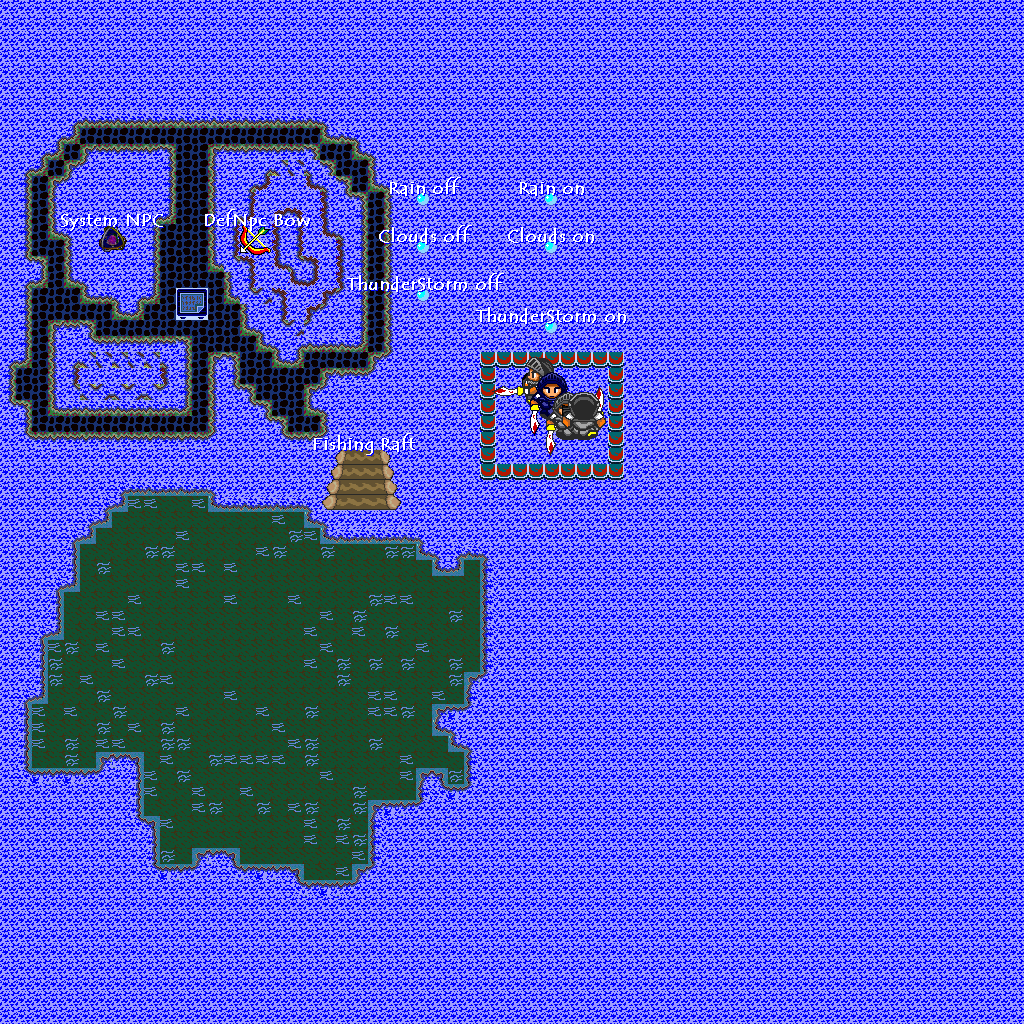I am starting a server project. I do not have a name yet but I am open for ideas. I have prozac helping with whatever scripts we need. Here are some of the things we already have. Weather system. Fishing on a raft. Flame bow. And we are scripting a new fighting system as well. I will post a screen of the npc level with those that prozac made. I am hiring LAT/NAT/GFX. Please, if you are interested forum pm me or post your aim. Here is a screenie of the raft. no gfx for rod u cant see.