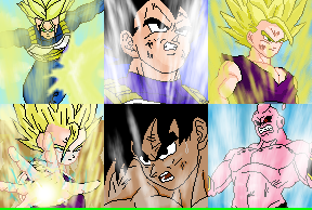 red truthfully those gfx own and how you do them effects i dont know but the selections of charchetrs bleh use the bad guys they always are better then goke and gohan i say you should do Raditz or Brolli or Supre 17 anyhow ima try and draw one shade it maybe you can help me out with the ki waves around the guys