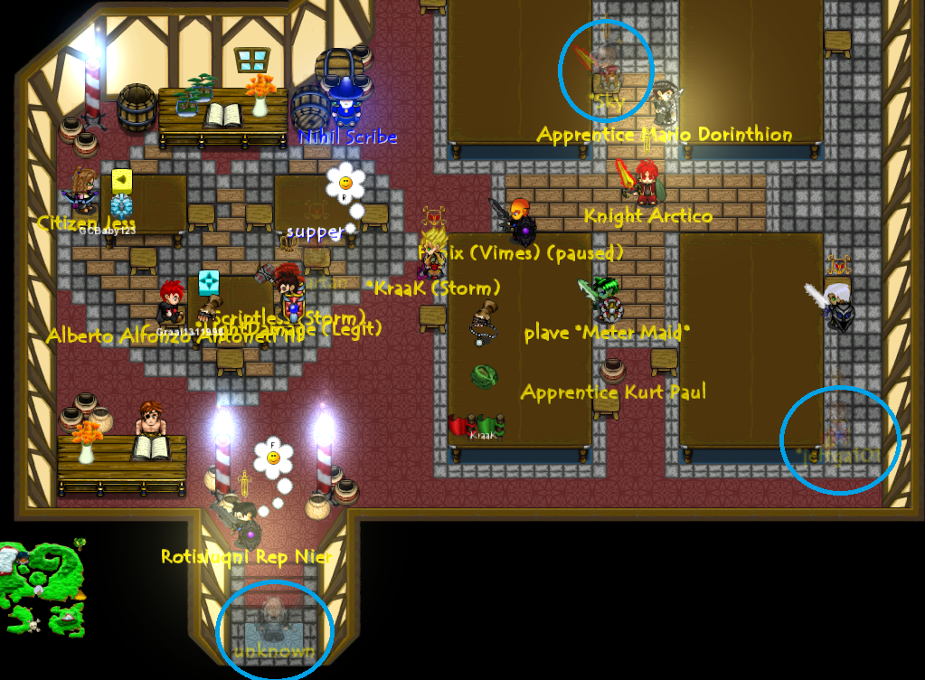 'Stealthed' players are circled in blue because they're kind of hard to see.