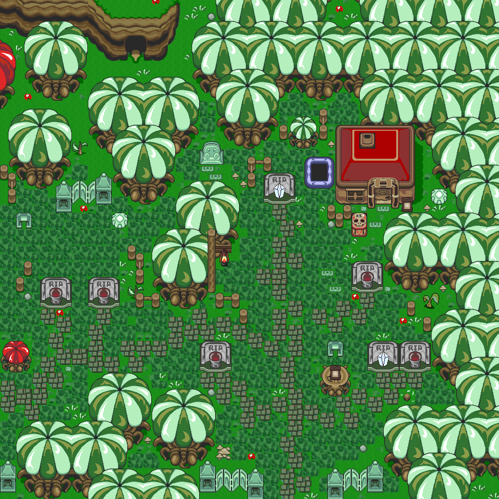 • Again, no NPCs, but you can see where I placed my lamps so you get where the lightsources are. I was also thinking of adding a fog effect similar to the Lost Woods in Link to the Past to add to the atmosphere.