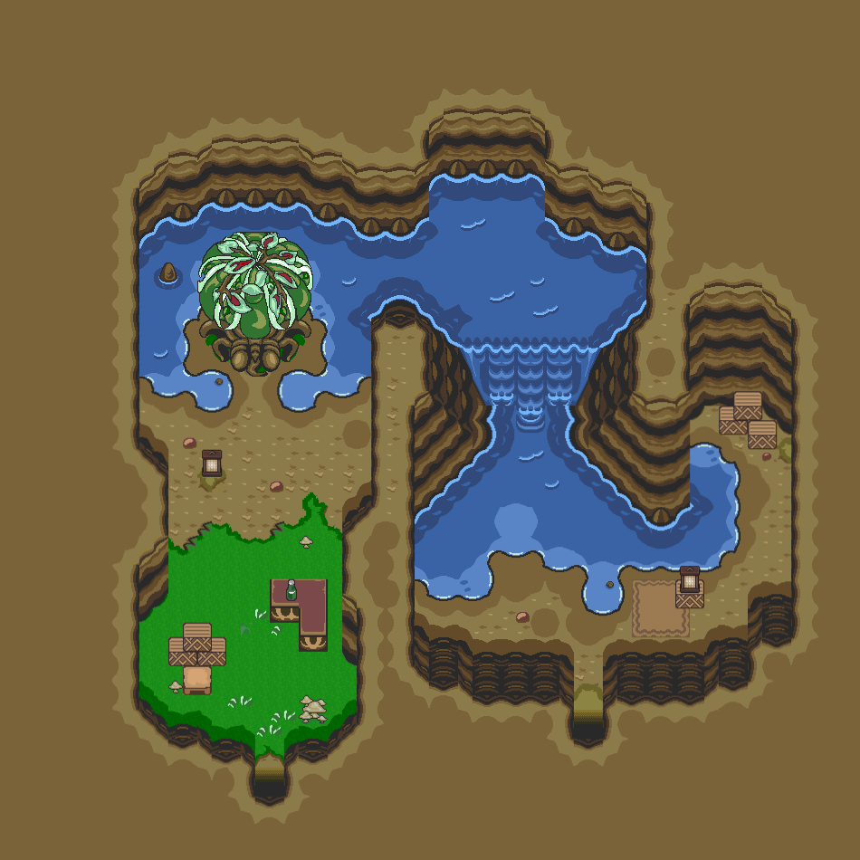 • The entrance to the interior level is through the well. The exit is the back cave. The entrance is one-way to prevent players from entering the graveyard without the hammer.