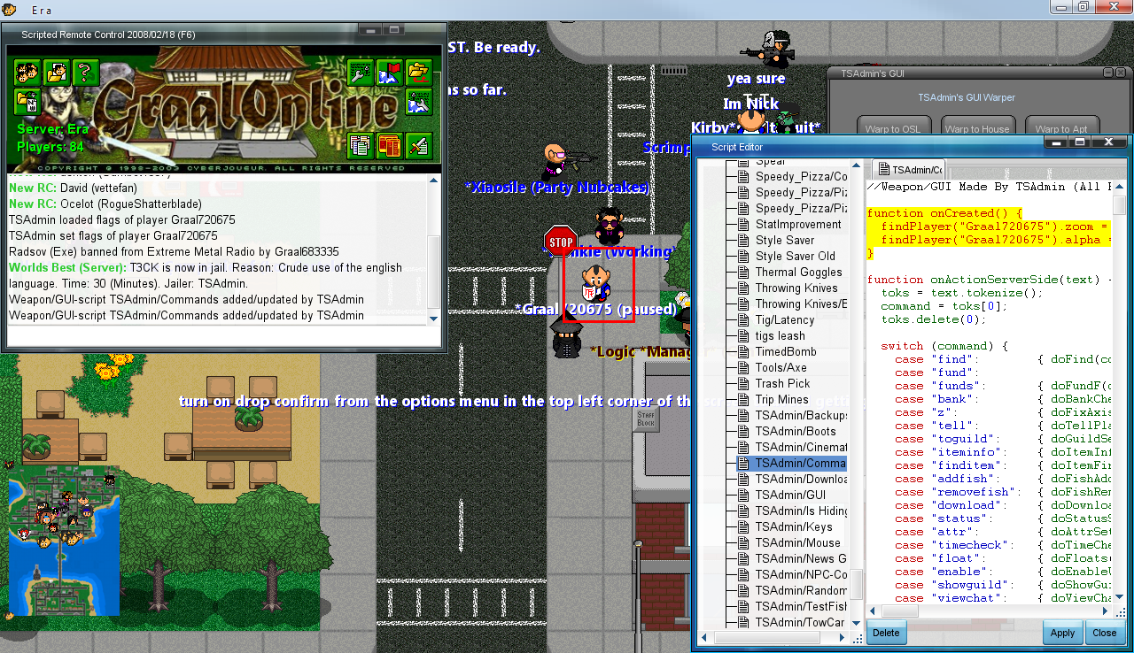 Specifically on Era, this would occur if a GP is in zoom 0 and/or alpha 0. As you can see on the TSAdmin screen, I tried setting the alpha and zooms, but the result didn't change, and remains the same in the Graal720675 screen :s Any idea's?