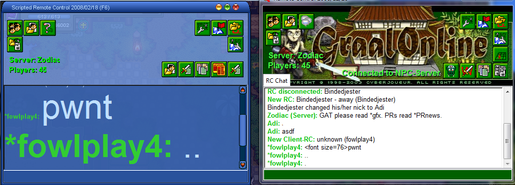 Well it was fun griefing my client-rc'ers on Zodiac but this should be dealt with.