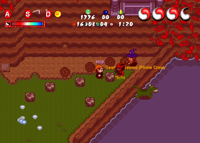 Graal2001 was a refreshing change to Graal, I enjoyed it quite a bit. I remember growing my trees and farming my apples, than taking them to the bakery to make pies. I made a game out of how many trees I could care for at one time. I used the money I got to buy almost every hat I could (remember those hectic days when hat shops opened and everyone on the server was packed into one of those small rooms, waiting). I remember the day I bought a playerhouse from Tiki, then quickly found out they were nothing I thought they were and sold it the next day.