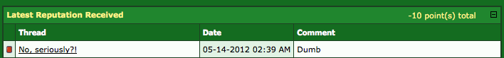 This entire ****ing thread shows that you do care. Don't sit and try to act all nonchalant about rep, like you're "better than that" in a thread entirely dedicated to you *****ing about the negative rep you're receiving. Posting stupid pictures isn't covering it up, either.