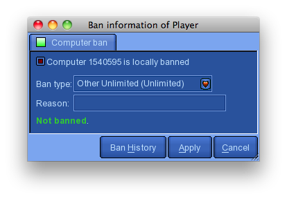 • The ban window now works properly. You can ban both accounts and PC IDs now;